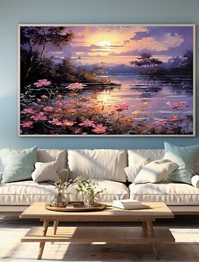Peinture à l'huile faite à la main, toile murale, décoration artistique, paysage de coucher de soleil de rêve pour la décoration intérieure, peinture roulée sans cadre, non étirée