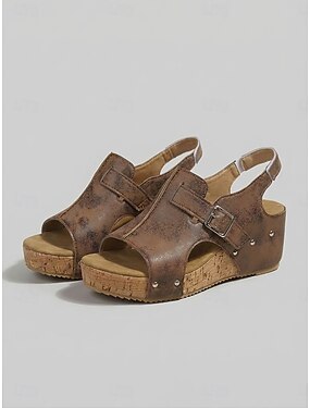 Sandales compensées marron pour femmes – sandales décontractées à bout ouvert et bride ajustable, idéales pour les voyages, le jardinage et les activités de plein air. &vêtements de tous les jours