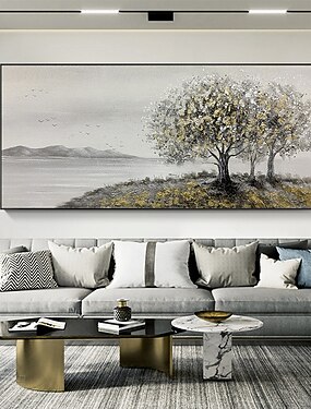 main peinture à l'huile toile mur art décor original concert arbre au bord du lac peinture abstraite paysage peinture pour la décoration intérieure roulé sans cadre non étiré peinture