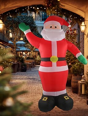 1 pc 2.5m/8.2ft Noël vert main debout Père Noël LED gonflable modèle d'air intérieur et extérieur rassemblement cour pelouse atmosphère lumière décorative ue/us/uk/au plug