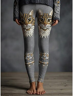 Femmes Leggings Vacances ancien Mode Longueur complète Taille haute Graphique Chat Impression Chaleur Thermique Doux Respirant Élastique Quotidien Extérieur Vacances Marron foncé Gris foncé Gris Noir
