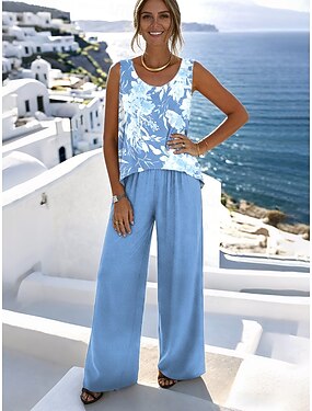 Femmes Ensembles de Pantalons Sans manches Col en U Fleuri Graphique Vacances Quotidien Occasionnel Quotidien Fête Bleu Violet Vert Été Coupe Ample