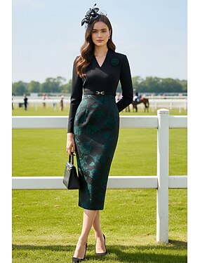 Robe de soirée cocktail longueur thé colonne fourreau invité de mariage mère de la mariée manches longues décolleté en V élégant formel spandex avec perles