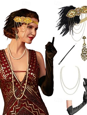 Années 1920 Gatsby le Magnifique Serre Tête Flapper Gatsby le Magnifique Paillettes Vintage Mode Sans Col Déguisement Femmes Halloween Carnaval Mascarade Soirée Mascarade Festival Adulte 1 Bracelet