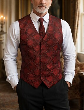 Rétro Vintage Années Folles Années 1920 Tenues Gilet Ensemble d'accessoires Gentleman Gangster Paisley Jacquard Déguisement Homme Costume de Carnaval 7 PCS Noël Halloween Carnaval Mascarade Cocktail