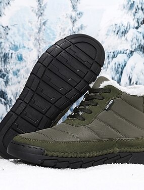 Bottes de randonnée d'hiver vert olive pour hommes, imperméables et isolées, idéales pour la neige et les aventures en plein air, confortables par temps froid et sur terrains accidentés.