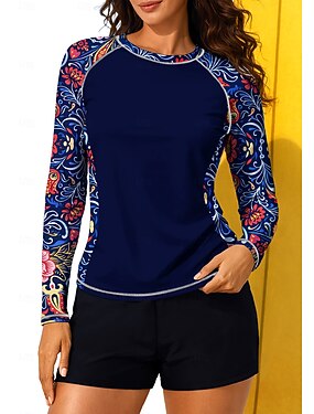 Femmes Standard Maillot de Bain Rash Guard Maillot Anti UV Maillot de bain à imprimé floral Floral Folk 2 pièces Coussin amovible Boyleg Protection Solaire UV UPF50+ Élastique manche longue Maillot