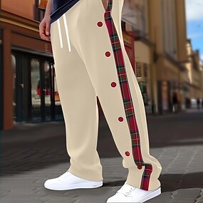 Homme Grille / motifs Carreaux Imprimé faux bouton Pantalons Pantalon décontracté Taille Moyenne Taille élastique à cordon Occasionnel Extérieur Fête Pantalons à jambes droites Printemps Automne