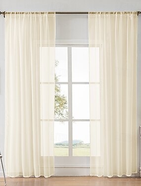 Rideaux blancs transparents de 213 cm de long pour chambre à coucher - rideaux filtrant la lumière, 1 panneau élégant &demi-rideaux en voile léger et respirant, texturés, à œillets, largeur 42 x