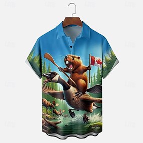 Fête du Canada Homme Feuille d'érable Castor Chemise Chemise d'été Chemise Boutonnée Manche Courte Mode Décontractée Fête Été Printemps Col Rabattu Impression 3D chemises à col Une poche avant Kaki