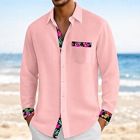 Homme Chemise Chemise en lin Chemise d'été Tenue de plage Chemise Boutonnée Uni Occasionnel Quotidien Noir Blanche Rose Claire Vert manche longue Col Printemps & Été Vêtement Tenue