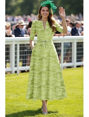 Ligne A Mi-long Robe de Cocktail Robe d'invité de mariage Robe de Derby Robe de Mère de Mariée Sans manches Manche 3/4 Col ras du cou Élégant ancien Formel Kentucky Derby Jacquard avec Imprimé
