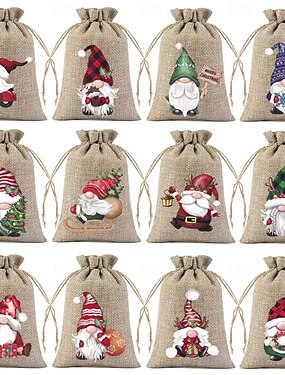 Ensemble de 12 sacs cadeaux de Noël en toile de jute avec des motifs de vacances aléatoires, petites pochettes de cadeaux de fête, parfaits pour les célébrations de Noël et du Nouvel An