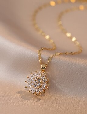 Collier For Femmes Zircon Quotidien Rue Acier au titane Floral Soleil