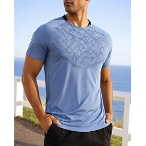 Homme Graphique T-shirt de course T-shirt de compression T-shirt athlétique Haut de sport Été Manche Courte Séchage Rapide Évacuation de l'Humidité Respirant Entraînement en salle Marche Jogging Bleu