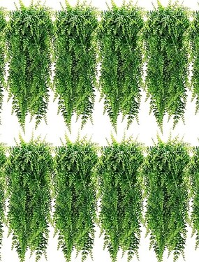Lot de 12 fougères de Boston artificielles suspendues de 32 pouces, fausse verdure réaliste sans entretien pour décoration intérieure/extérieure, mariages, expositions, Thanksgiving, Noël &Halloween