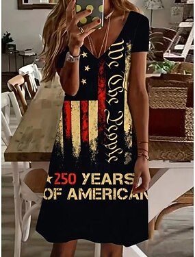 Jour de l'Indépendance Américaine Femmes Mini Robe Robe T-Shirt Robe trapèze Occasionnel Quotidien Coupe régulière Graphique Drapeau Américain Manche Courte Col en V Bleu Noir Rouge Été Printemps