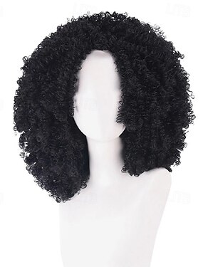 Perruque afro courte et bouclée avec frange, sans colle, pour femmes et hommes noirs, style disco années 70, volume volumineux, cheveux synthétiques résistants à la chaleur, aspect naturel, idéale