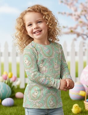 Pâques Fille 3D Graphique Lapin T-shirt manche longue Impression 3D Printemps Automne Sports Mode Streetwear Enfants 4-12 ans Col Rond Occasionnel Quotidien Extérieur Coupe régulière