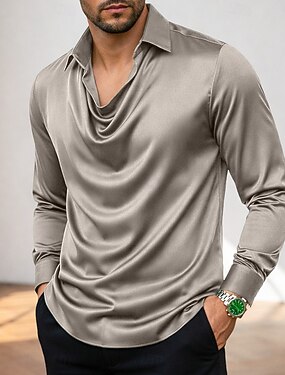 Homme Chemise Comme de la soie Chemise en satin Chemise Décontractée Uni Quotidien Vacances Argent Noir Dorée Vert manche longue Drapé Printemps Printemps & Automne Vêtement Tenue Froncé