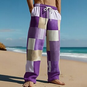 Homme Géométrique Bloc de Couleur Patchwork Pantalons Pantalon décontracté Pantalons Amples Taille Moyenne Mode Maison Extérieur Vacances Taille élastique avec cordon de serrage Pantalon en lin avec