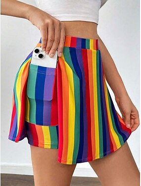 Femmes Jupe de vacances Jupe de tennis Élégant Mode Hawaïen Tenues de plage Mi-long Taille haute Jupes Graphique Rayé Non Elastique Quotidien Plage Améthyste Rouge Vert Été 95 % polyester, 5