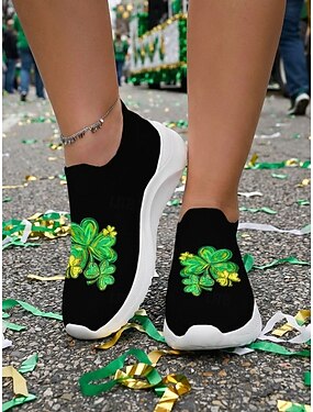 Chaussures à enfiler pour femmes avec motif trèfle pour la Saint-Patrick - baskets légères en maille athlétique idéales pour les festivals, les soirées entre amis et les défilés de rue. &vêtements