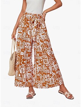 Femmes Pantalons Pantalon d'été Pantalons Amples Pantalon décontracté Vacances Mode Basique Longueur complète Taille moyenne Cordon de serrage Avec Poches in in france they say Pontalon wide leg