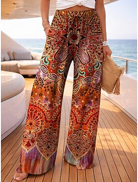 Femmes Jambe large Chinos Pantalons Vacances Mode Basique Longueur complète Taille Moyenne Paisley Avec Poches Taille Élastique Imprimé Confortable Confort Respirabilité Non Elastique Quotidien
