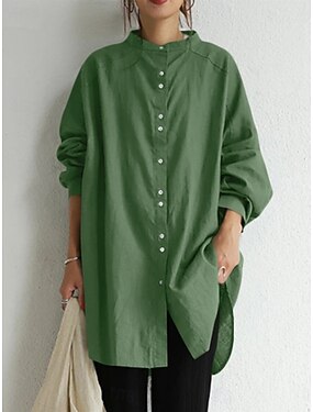 Femmes Chemises en coton et lin Faux coton lin Boutons Couleur Unie Quotidien Élégant Basique manche longue Col haut Hauts Longs Quotidien Bleu Marron Vert Beige Été Printemps Automne