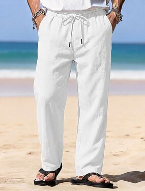 Homme Pantalons en Lin Pantalons Pantalon d'été Pantalons Amples Pantalons de Plage Cordon de serrage Taille Élastique Jambe Droite Uni Léger Respirant Longueur complète Occasionnel Quotidien