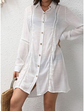 Femmes Mini Robe Robe Blanche Robe de Plage Robe Chemise Vêtement couvrant Élégant Mode Classique Quotidien Extérieur Plage Coupe Ample Uni manche longue Col de chemise Blanche Été Printemps
