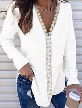 tunique femme élégante décontractée dentelle manches longues hauts réguliers quotidien noir blanc beige printemps automne