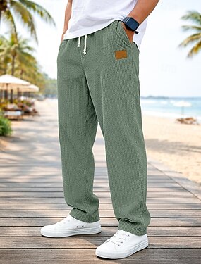 Homme Pantalon en velours côtelé Pantalon décontracté Cordon de serrage Jambe Droite Couleur Unie Confort Longueur complète Occasionnel Quotidien Extérieur Vacances Mode Bleu Noir Élastique