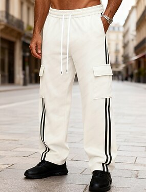 Homme Pantalon de survêtement ample Jogging Cargo Joggings Pantalons Cordon de serrage Avec Poches Taille Élastique Rayé Confort Sport en Plein Air Quotidien Mode Occasionnel Noir Blanche