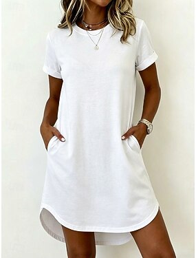 Femmes Mini robe Robe T-Shirt Basique Classique Quotidien Sortir Coupe Ample Uni Manche Courte Col ras du cou Blanche Rose Claire Orange Vert Été Printemps