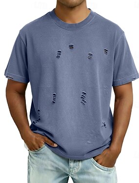 Homme T-shirt Chemise 100% coton délavée à l'acide Manche Courte Col ras du cou Été Printemps Toutes saisons Uni ancien Mode Designer Teinture en vêtement Délavé Lavé Vacances Rue Sortir Bleu Noir
