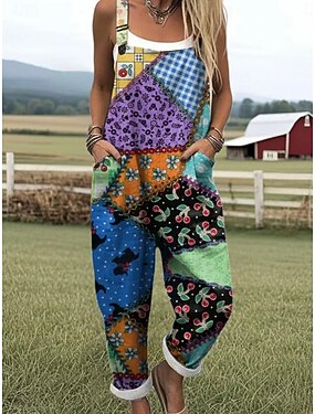 Femmes Salopette Actif Graphique Sans manches Jambe large Imprimé Quotidien Vacances Coupe Ample Bleu Jaune Violet Été