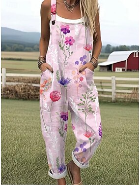 Femmes Combinaison Actif Fleuri Sans manches Sans manches Col carré Avec Poches Imprimé Quotidien Vacances Coupe Ample Bleu Vert Claire Rose Claire Été