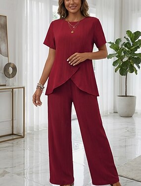 Femmes T-shirt Ensembles de Pantalons Haut boléro Manche Courte Col ras du cou Col rond Couleur Unie Mode Streetwear Quotidien Extérieur Vacances Rouge bleu marine Vert Été Coupe régulière Coupe Ample