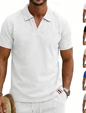 Homme Chemises Polo Gaufre Polo Occasionnel Rue Revers Manche Courte Basique Moderne Uni Poids Léger Respirable Été Printemps Coupe Ample Noir Blanche Bleu Roi Kaki Gris Claire Chemises Polo Gaufre