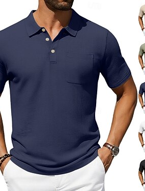 Homme Chemises Polo Gaufre Polo Occasionnel Rue Revers Manche Courte Basique Moderne Uni Poids Léger Respirable Été Printemps Coupe Ample Noir Blanche Bleu Roi Kaki Gris Claire Chemises Polo Gaufre