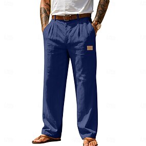 Homme Pantalons en Lin Pantalons Pantalon d'été Pantalons Amples Avec Poches Taille Élastique Uni Confort Respirant Longueur complète Quotidien Extérieur Affaires Mode Style Classique Bleu Noir Non