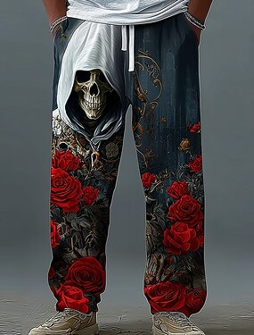 Pantalons baggy pour hommes pantalons décontractés taille mi-haute style punk gothique sombre vacances élastique à la taille pantalons ressemblant à du lin avec poches impression 3D sombre printemps