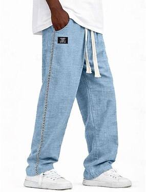 Homme Pantalons Pantalon décontracté 100% Coton Pantalons Amples Pantalon délavé à l'acide Cordon de serrage Taille Élastique Jambe Droite Uni Doux Confortable Longueur complète Occasionnel Quotidien