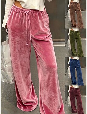 Femmes Pantalons Pantalon d'été Pantalons Amples Pantalons de Plage Vacances Mode Streetwear Longueur cheville Taille haute Uni Avec Poches Taille Élastique in in france they say Pontalon wide leg