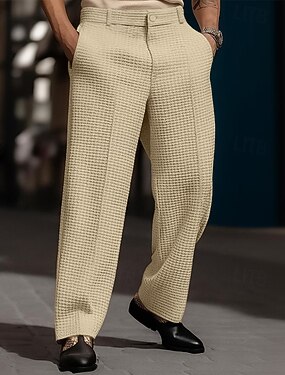 Homme Pantalons Dress Pants works Pantalons Amples Pantalon gaufré Avec Poches in in france they say Pontalon wide leg Uni Respirant Longueur complète Extérieur Soirée Affaires Vacances Mode Noir