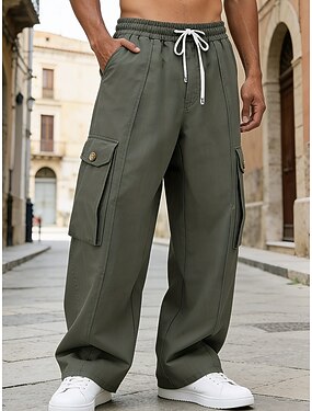 Homme Pantalons Cargo Pantalons Pantalons Amples Cordon de serrage Taille Élastique Multi-poches Couleur Unie Coupe-vent Confort Longueur Genou Quotidien Extérieur Fête Vacances Streetwear Vert