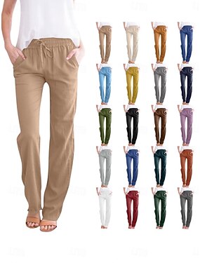 Femmes Faux coton lin Chinos Pantalon d'été Vacances Streetwear Basique Longueur complète Taille moyenne Uni Cordon de serrage Avec Poches Confortable Confort Non Elastique Quotidien Extérieur Rue