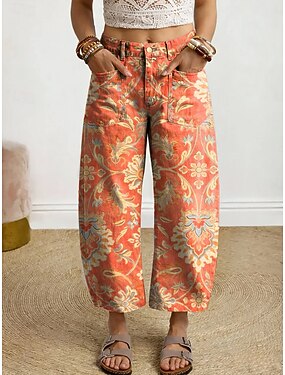 Femmes Jambe large Chinos Pantacourt Vacances ancien Occasionnel Longueur cheville Taille haute Fleuri Graphique Imprimé Confortable Confort Respirabilité Non Elastique Quotidien Extérieur Rue Bleu